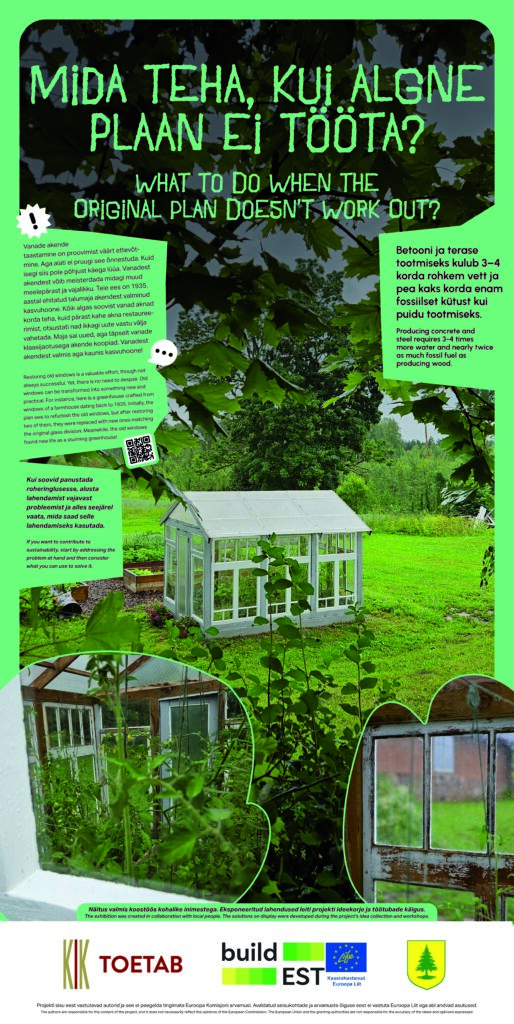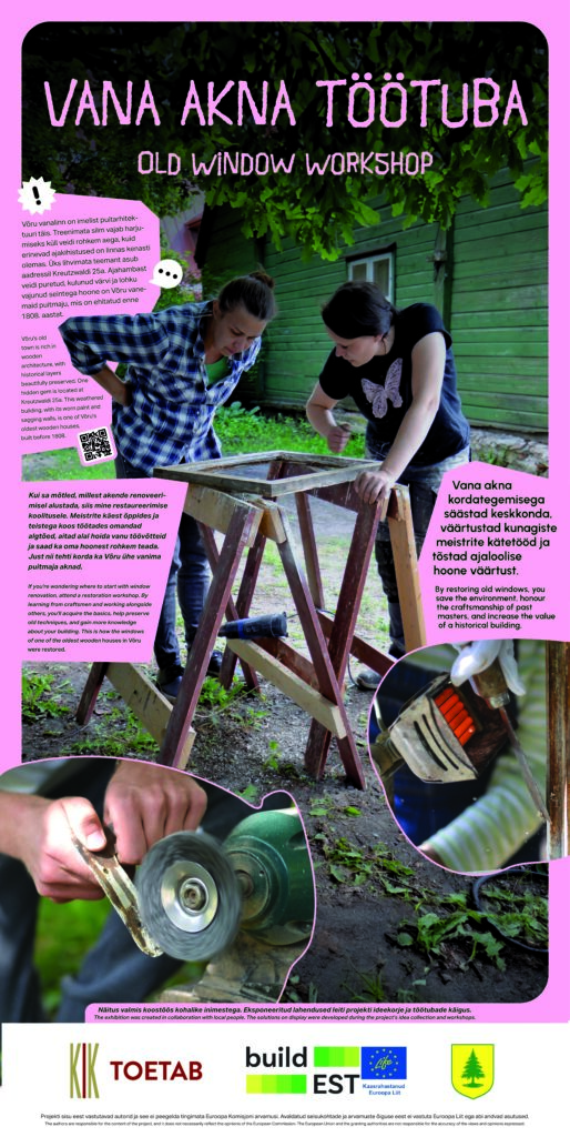 In August 2024, a wonderful outdoor exhibition titled “Window to the Old Town” was created in co-creation with the people of Southeast Estonia. The material for the exhibition was gathered through an open call held earlier this year, where the Võru city government invited building owners from Võru, Põlva, and Valga to share their creative and interesting solutions for reusing old building materials.