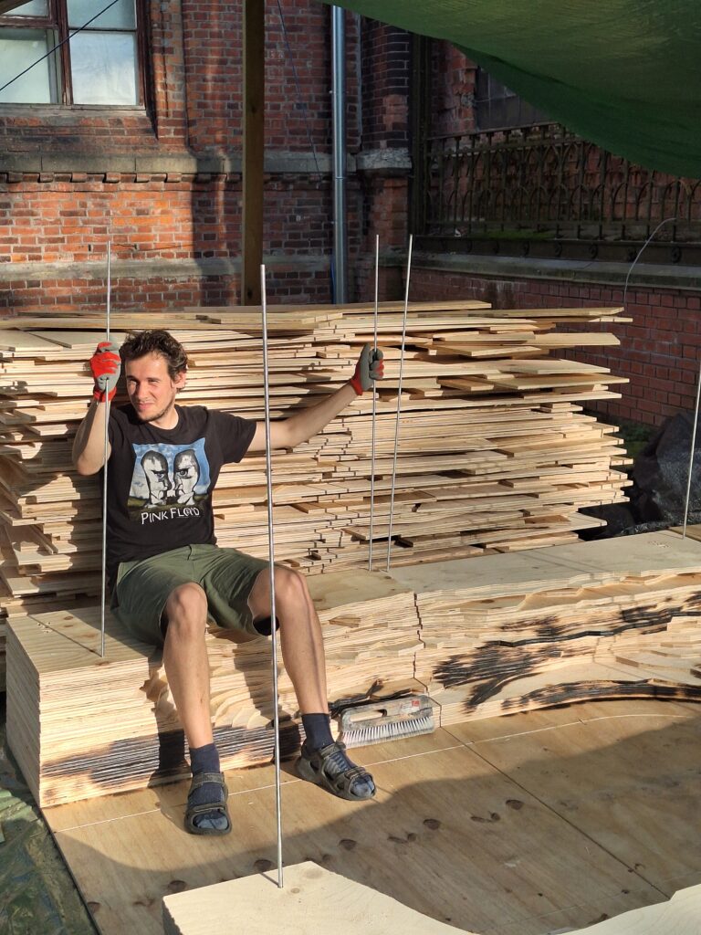The project was meant to ride on the ridge with all the experimentation, uncertainty, responsibility, and it did. At least two occasions required invention to move forward. So much help and support we have received, it would have not been possible without the people who joined and contributed along the way. There are the last few responsible tasks ahead of us but all the leaps are in the past. All I want is that the locals, who I got to talk to while working on-site, would get to experience it and act-out the imaginaries they shared – to climb it, to greet the sun by it, to throw a party there. We were mindful of the lively attitude and we tried to produce the installation sturdy and safe to withstand the vigour of this place, which I adore. It is public art and I hope it integrates.