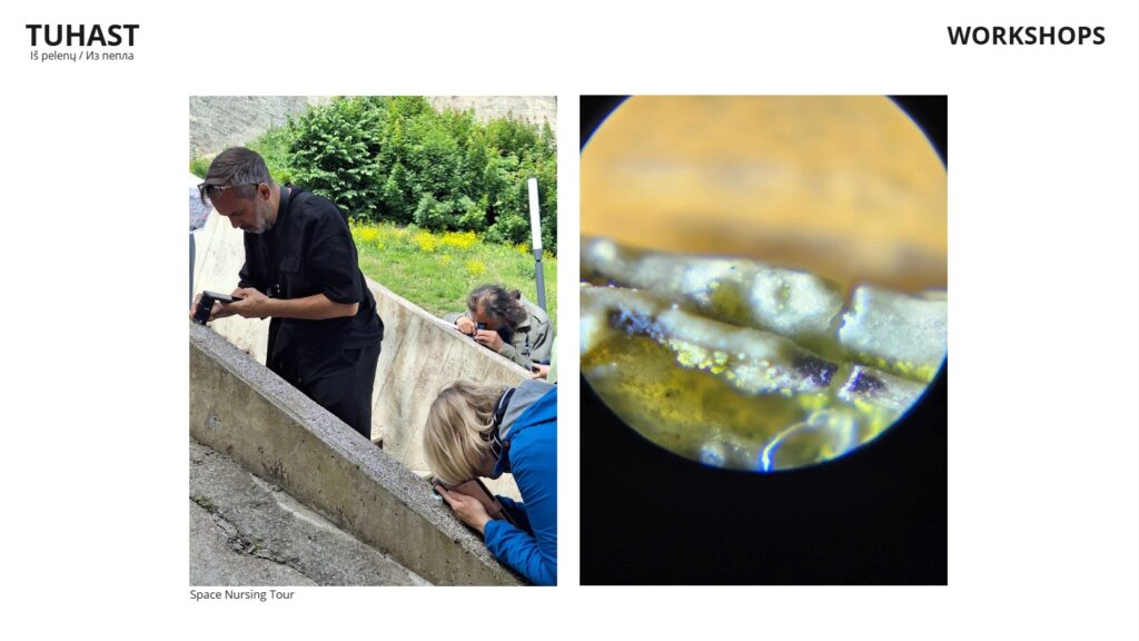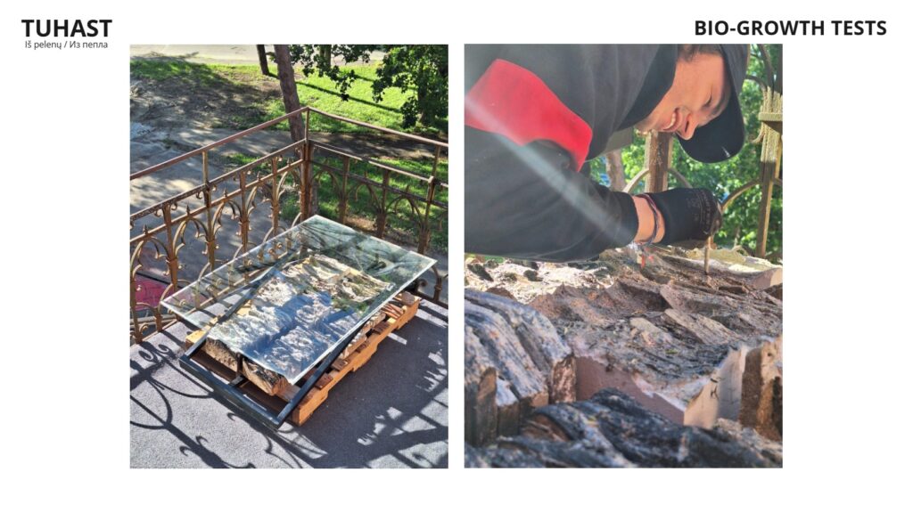 During the period of the residency, the author explores the use of bio-receptive OSA concrete — a pioneering state-of-art material that amalgamates oil shale ash with traditional cement, while experimenting with novel concrete-casting techniques to recreate form and texture of shale-rock formation. As a part of the public program, the artist organised a series of presentations and workshops, engaging the local community and visiting students to explore the themes of urban ecology and sustainable materials, fostering a practical understanding of the environmental and social impact of industry.