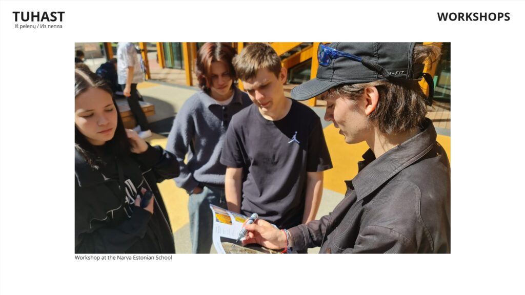 The project is a part of TAB 2024 Satellite program, administered by Narva Art Residency, and is supported by Narva Municipality, Estonian Cultural Endowment, Estonian Ministry of Culture, and Lithuanian Council for Culture. Installation production partners: 3DKoda OÜ, Decora AS, Enefit, Ehituse ABC, Uus Saam Grupp and D&M BALKANSKI OÜ with the assistance of Tatjana Štšurikova, Marius Lukošiūnas and Lyly Letzer, Delija Thakur, Ditiya Ferdous, Algis Sprindžiūnas. Project friends: Kohtla-Järve Museum of Oil Shale, Ragn-Sells AS.